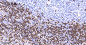 结果:阳性部位棕褐色,细胞核天蓝色,对比鲜明,无背景着色。