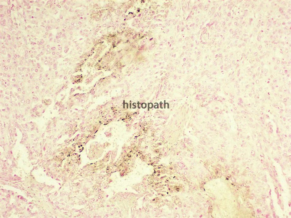 铜盐染色原理:铜在正常人体组织内含量极少,当肝豆状核变性或肝硬化时,铜含量明显增加。铜盐染色法适于诊断肝炎、肝硬化、药物性肝损伤及原发性硬化性胆管炎等引起的肝细胞或胆管内的胆色素增多,还可用于诊断和鉴别慢性胆汁淤积、 Wilson 病及1-抗胰蛋白酶缺乏症。红氨酸法原理在于红氨酸与铜盐反应生成红氨酸-二亚胺(二硫乙二 胺红氨酸)型铜盐沉淀,呈黑绿色。