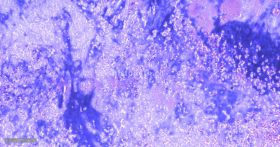2、 初染:滴加结晶紫染色液覆盖样本染色10-30 s,水洗,甩干水分。