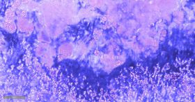 4、 脱色:滴加脱色液从载玻片一端冲洗组织进行脱色,直至流下的脱色液不再出现紫色为止,立即水洗去除脱色液。注意控制脱色时间。