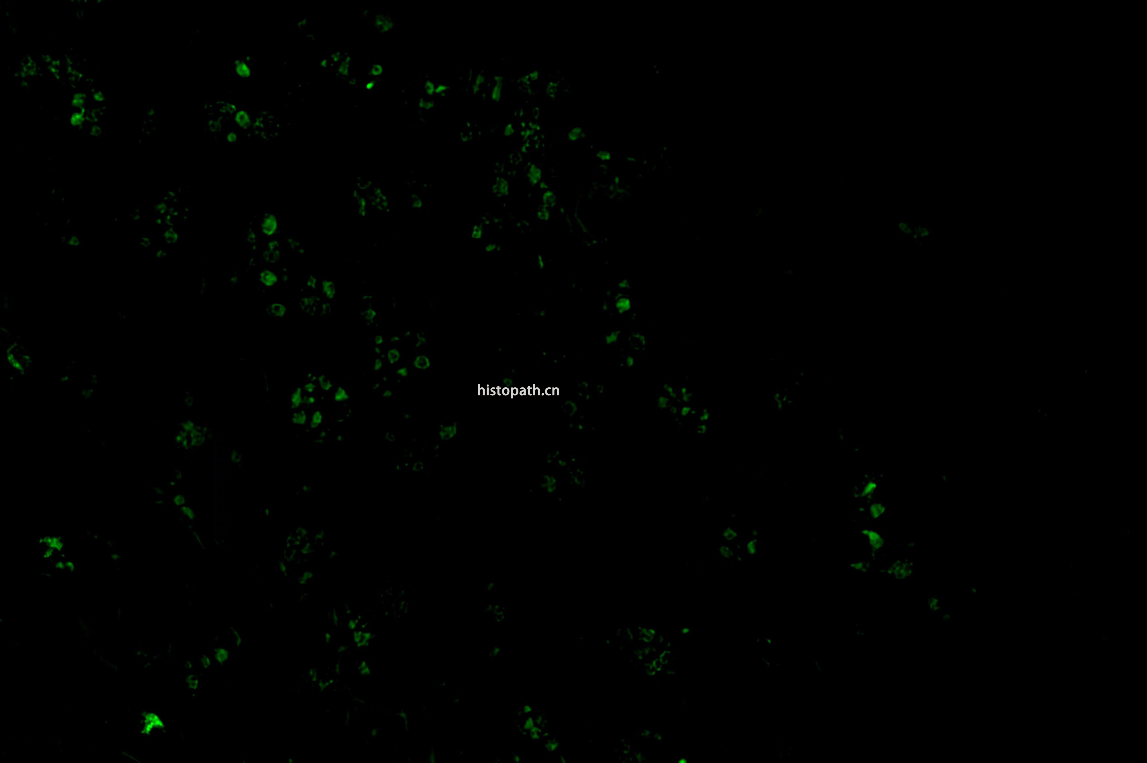 (5)脱水、透明:75%乙醇1分钟—95%乙醇1分钟—无水乙醇1分钟—二甲苯1分钟—二甲苯1分钟—二甲苯1分钟—抗荧光淬灭封片胶封片